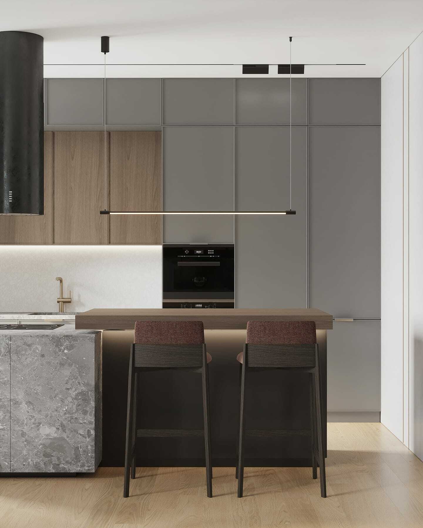 A contemporary interior design project for a large apartment, focusing on clean lines, a harmonious selection of natural materials and a laid-back, understated sense of serene luxury. Warm undertones in materials and finishes, a carefully designed system of local lighting and bold solutions of interflowing open space characterize this interior design project. It is a statement house — but also the perfect space to live a life with focus, serenity and taste.