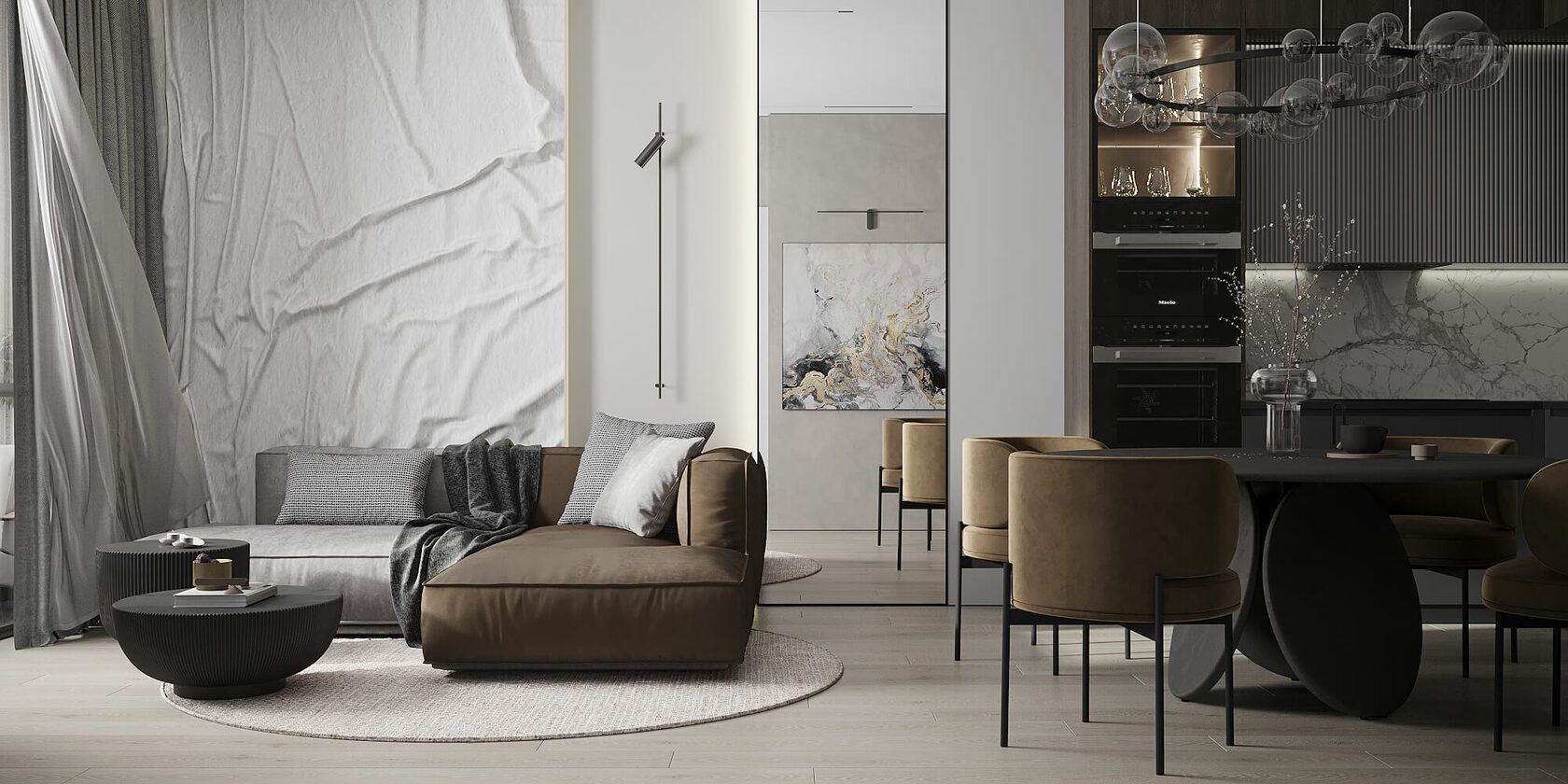 Works: Planning solution development l 3D visualization l Technical documentation l Full equipment + orders l Architectural supervision