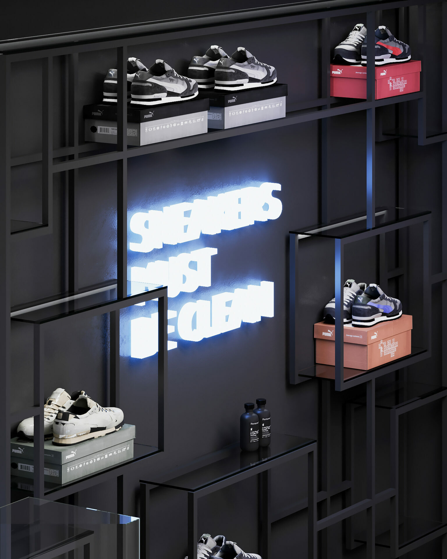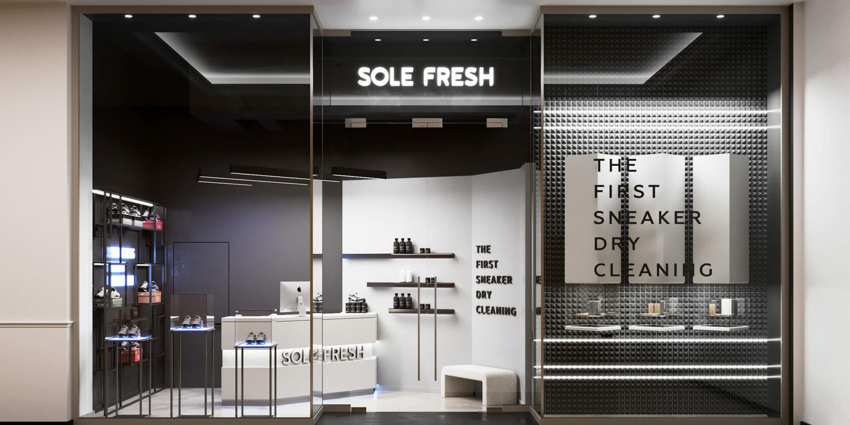 A commercial space in Dubai Mall, designed for a shoe care boutique Sole Fresh.